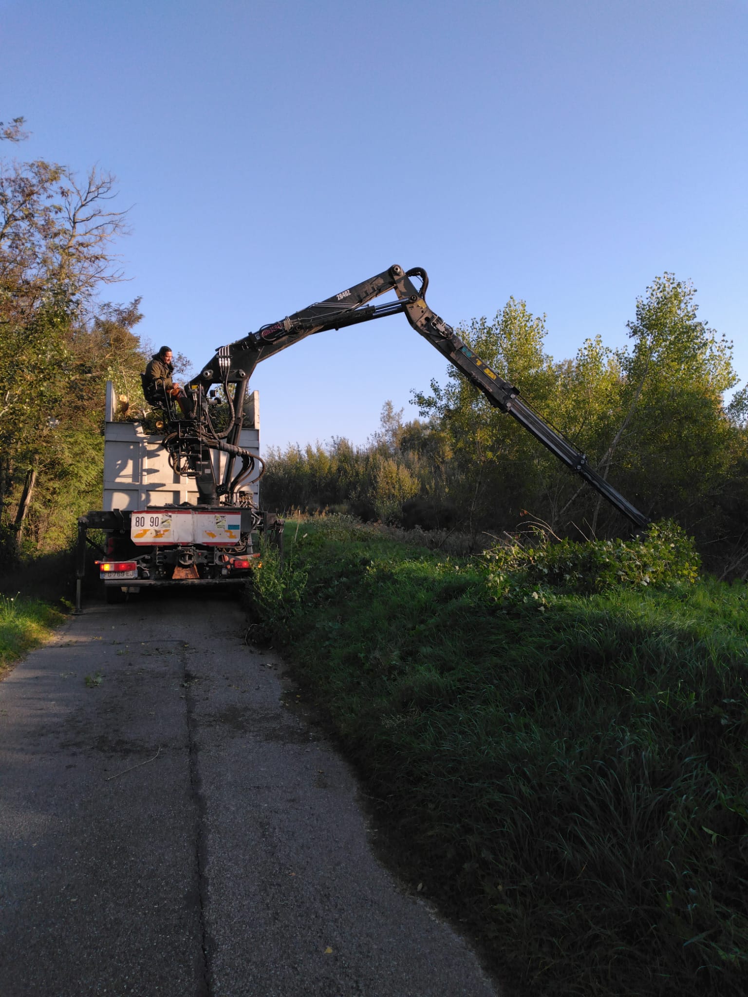 À Bénivay-Ollon, un chantier d’abattage et d’élagage permet de restructurer la ripisylve et de favoriser un développement plus équilibré de la végétation riveraine.