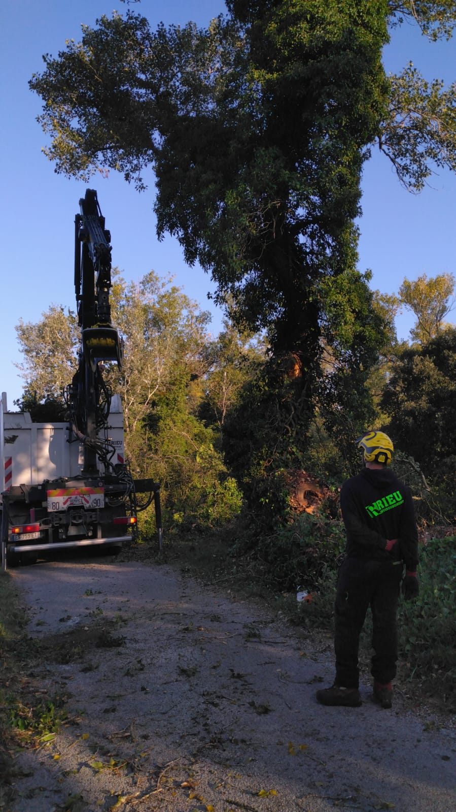 À Bédarrides, plusieurs chantiers se poursuivent : entretien de la végétation, recépage des arbres en têtard (ou “trognes”), enlèvement des embâcles dans le secteur du coude de l’Ouvèze, et débroussaillage de la Contre-Seille.